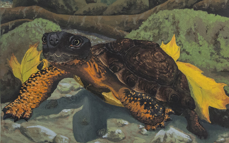 Miranda McCleaf’s acrylic painting depicting a wood turtle in its aquatic habitat won the inaugural Restore the Wild Artwork Competition. Read more…