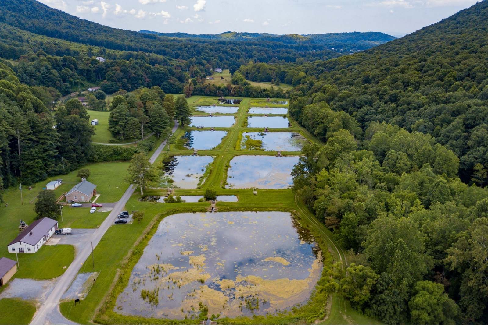 The hatchery is located in Smyth County Virginia, 8 miles south of Marion near the community of Thomas Bridge. The property comprises 147 acres of land, of which only 35 acres have been developed. The South Fork of the Holston River that flows through the hatchery property provides an excellent special regulation catch and release trout fishery. Many fish caught are citation-size rainbow and brown trout. There is access to almost a mile of river on the hatchery property.