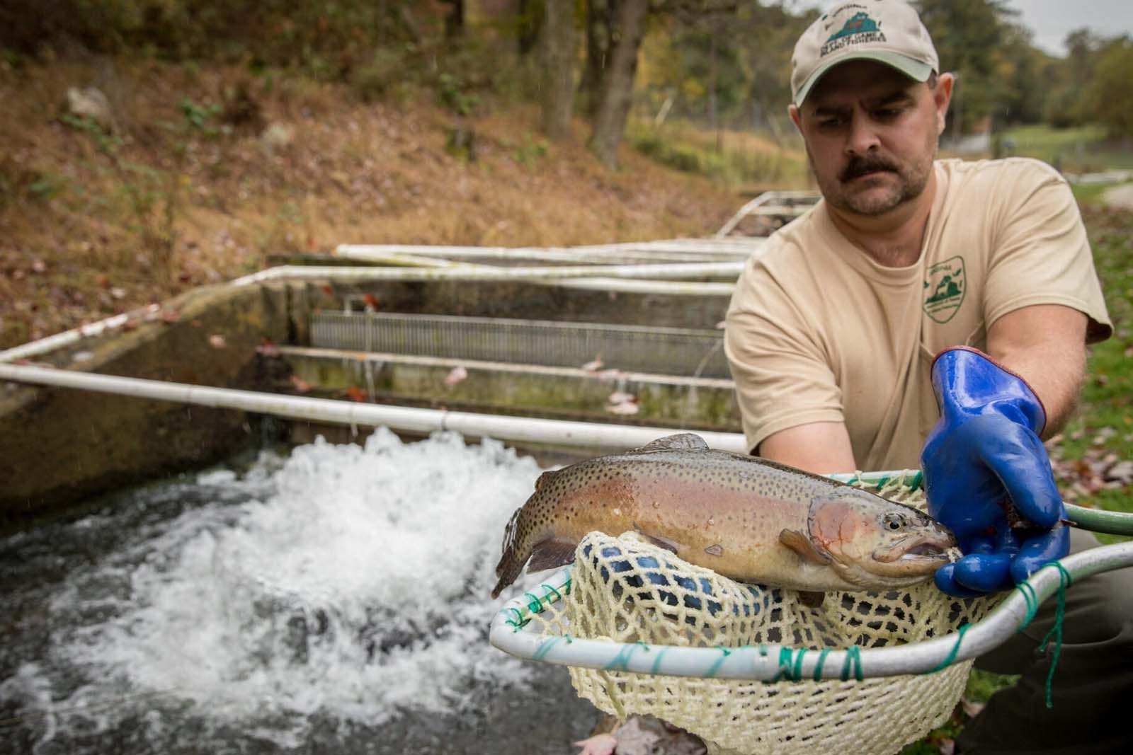 Unlike the other DWR hatcheries, Montebello does not hatch any fish, but it plays an essential role as a rearing station for young fish. DWR brings fingerling brook, brown, and rainbow trout that were hatched at DWR cold-water hatcheries to Montebello. These fish are grown until they are large enough to be stocked into waters on the east side of the Blue Ridge Mountains. Montebello stocks 23 rivers and lakes from Amherst County northward to Fairfax County in addition to six lakes and ponds and one stream in urban localities. Montebello normally stocks 100,000 to 150,000 trout per year.