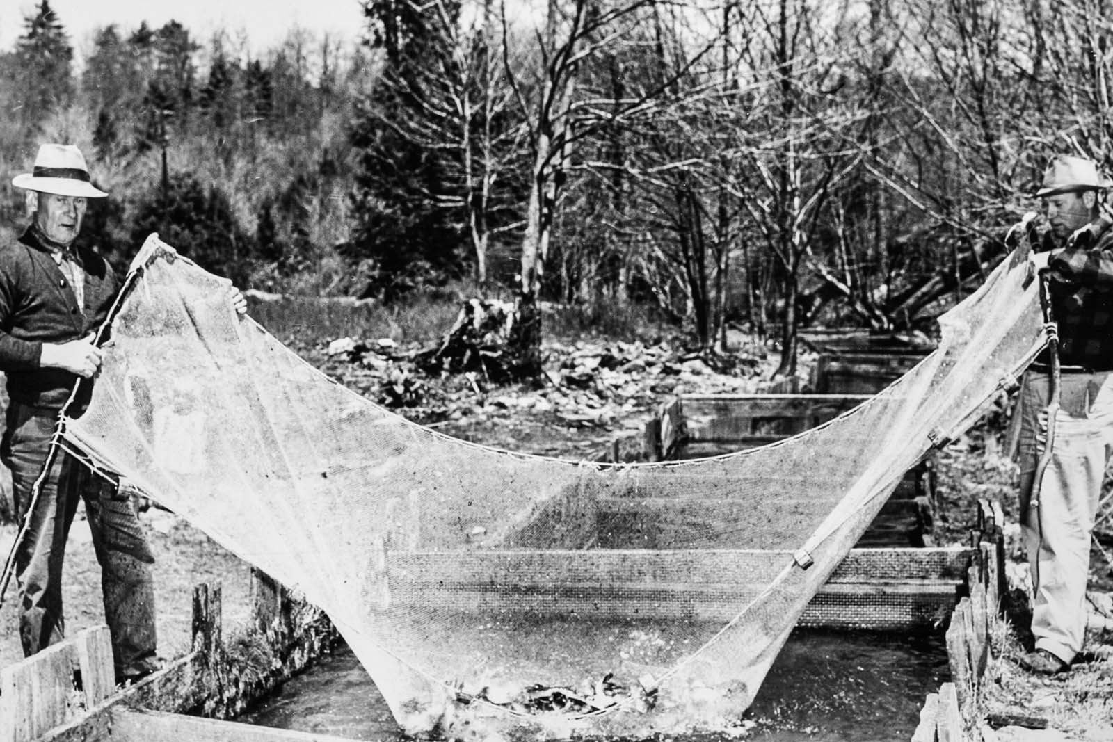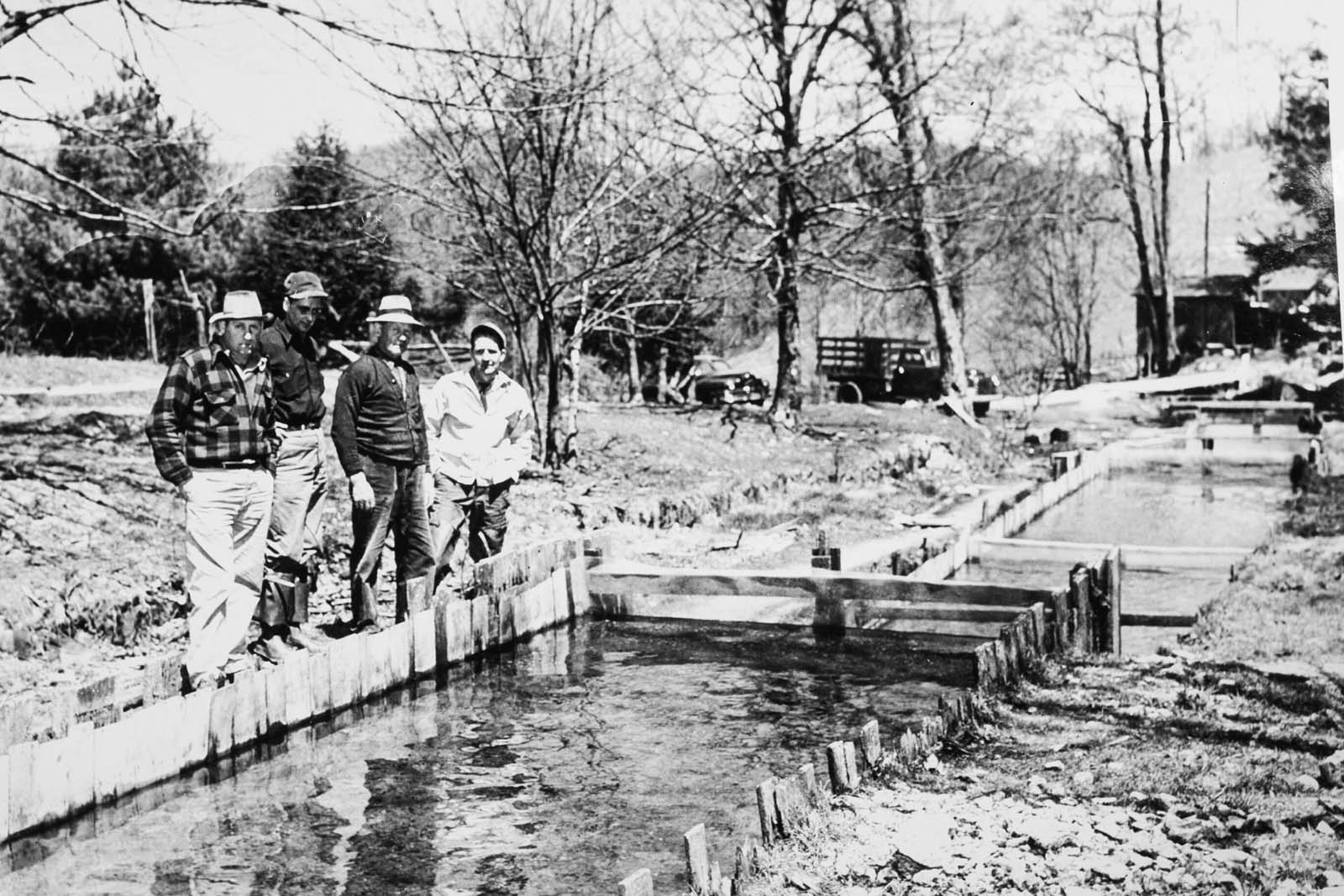 Montebello Fish Hatchery is spring fed, with pumping capabilities from the creek below the facility when surplus water is needed. The original facility had earthen raceways with wooden (mostly American chestnut) sides and ends. Later, in the early 1950s, the earthen and wooden raceways were replaced by concrete raceways in a single row. This design needs less water to operate.