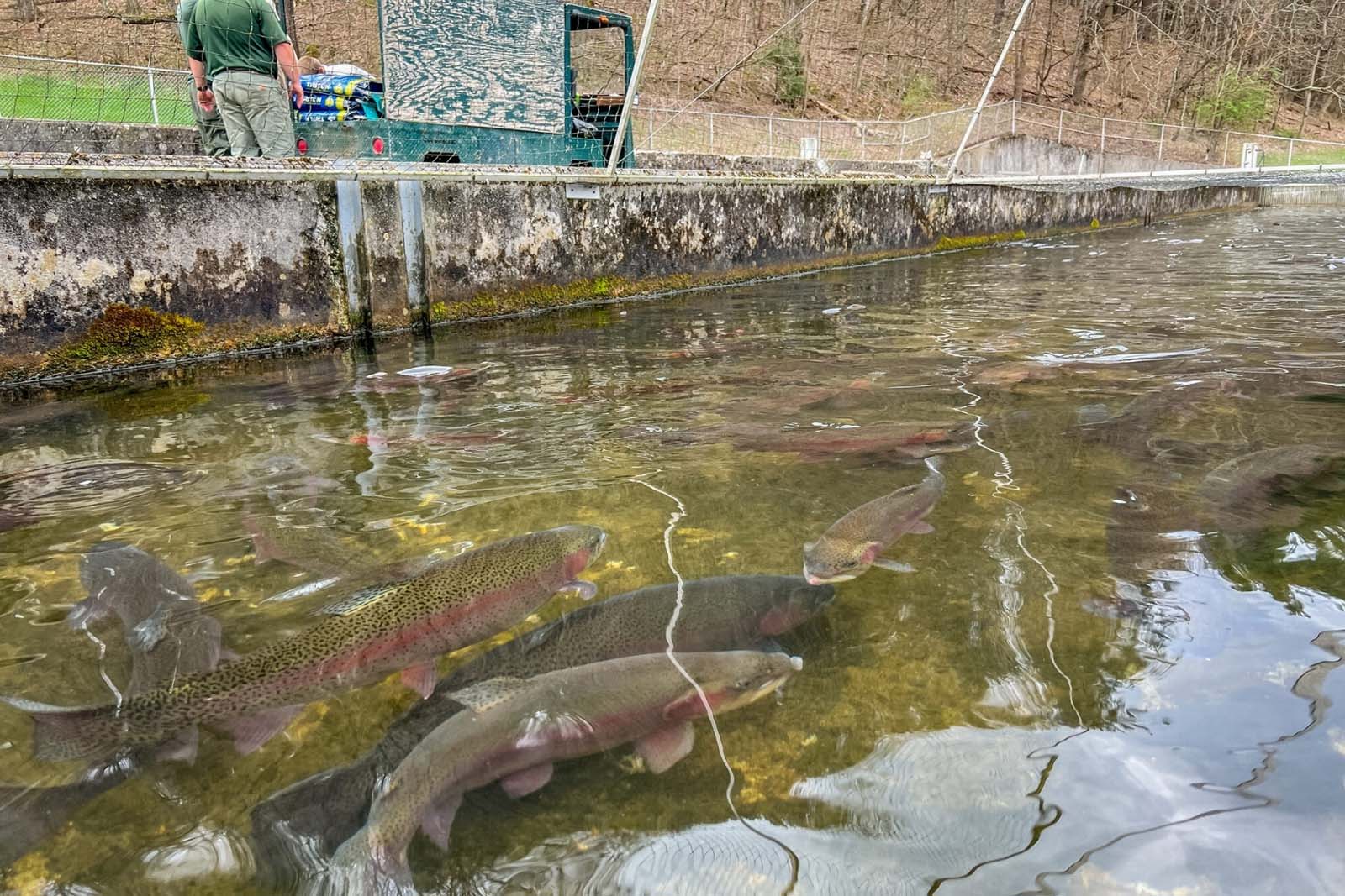 Paint Bank Hatchery produces triploids, which are genetically sterile fish used to stock waters that have existing native fish populations. The triploids pose no threat to the native fish in the form of inbreeding or establishing a reproducing population of stocked fish. Triploids also have the ability to grow faster than normal trout after 2 years old.