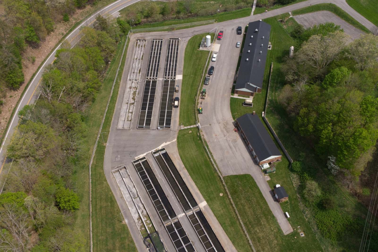 The hatchery is located in Craig County on RT 311 in the town of Paint Bank, which is near the West Virginia border. Paint Bank Hatchery was built by USFWS and opened in 1960. DWR leased the facility in 1983 and now retains full ownership. Paint Bank Hatchery’s water supply is from three natural springs located on the property that deliver water to the raceways by gravity and underground piping. The water is very clean and normally between 49 and 54 degrees F all year. This is a substantial advantage for raising trout.