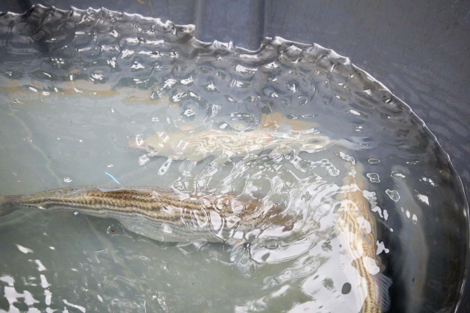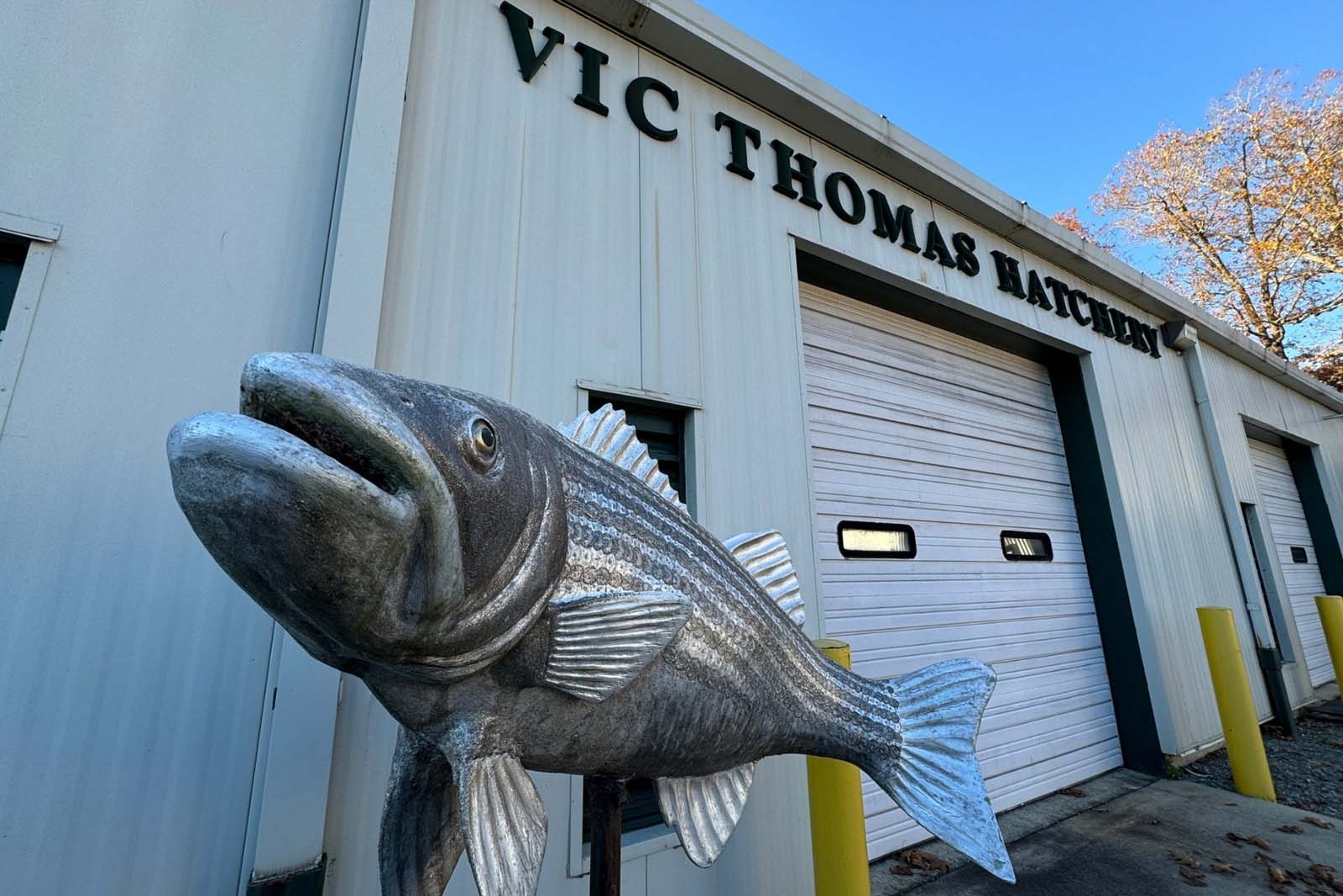 The hatchery stocks around 750,000 striped bass fingerlings, 300,00–400,000 walleye fingerlings, 400,000–500,000 bluegill fingerlings, and 50,000 white crappie fingerlings annually. Additionally, the hatchery supplies other hatcheries in the Commonwealth with striped bass and walleye eggs and fry as requested. Centrally located, Vic Thomas is a vital staging and distribution facility for distributing channel catfish for the urban fishing program as well as distributing triploid grass carp for vegetation control in Commonwealth waters.