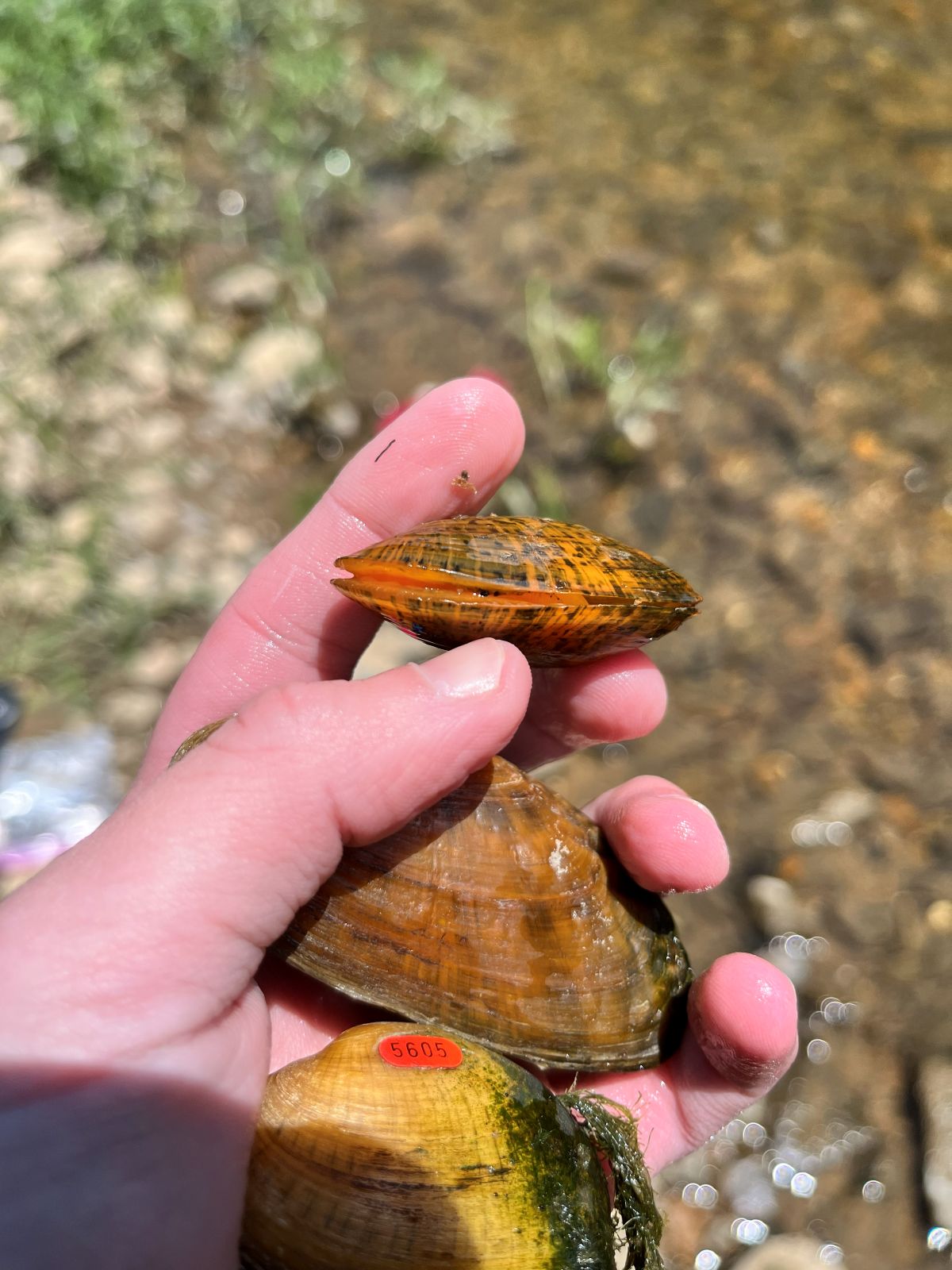 An Elktoe showing off its bright orange foot. Photo by ©Kayla Howard - DWR